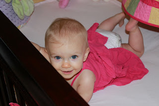 At this point I decided that today would be the day that we lowered the crib. So daddy went out and bought the proper tools and together Stella and he lowered her crib.For my friends that do not have kids, you make think I'm crazy because this minor event made me sad. But, everyone tells you how quickly they grow up. This was my first realization of how true this is. We just want to keep her small for as long as we can. So far now our baby is back to being pinned in.